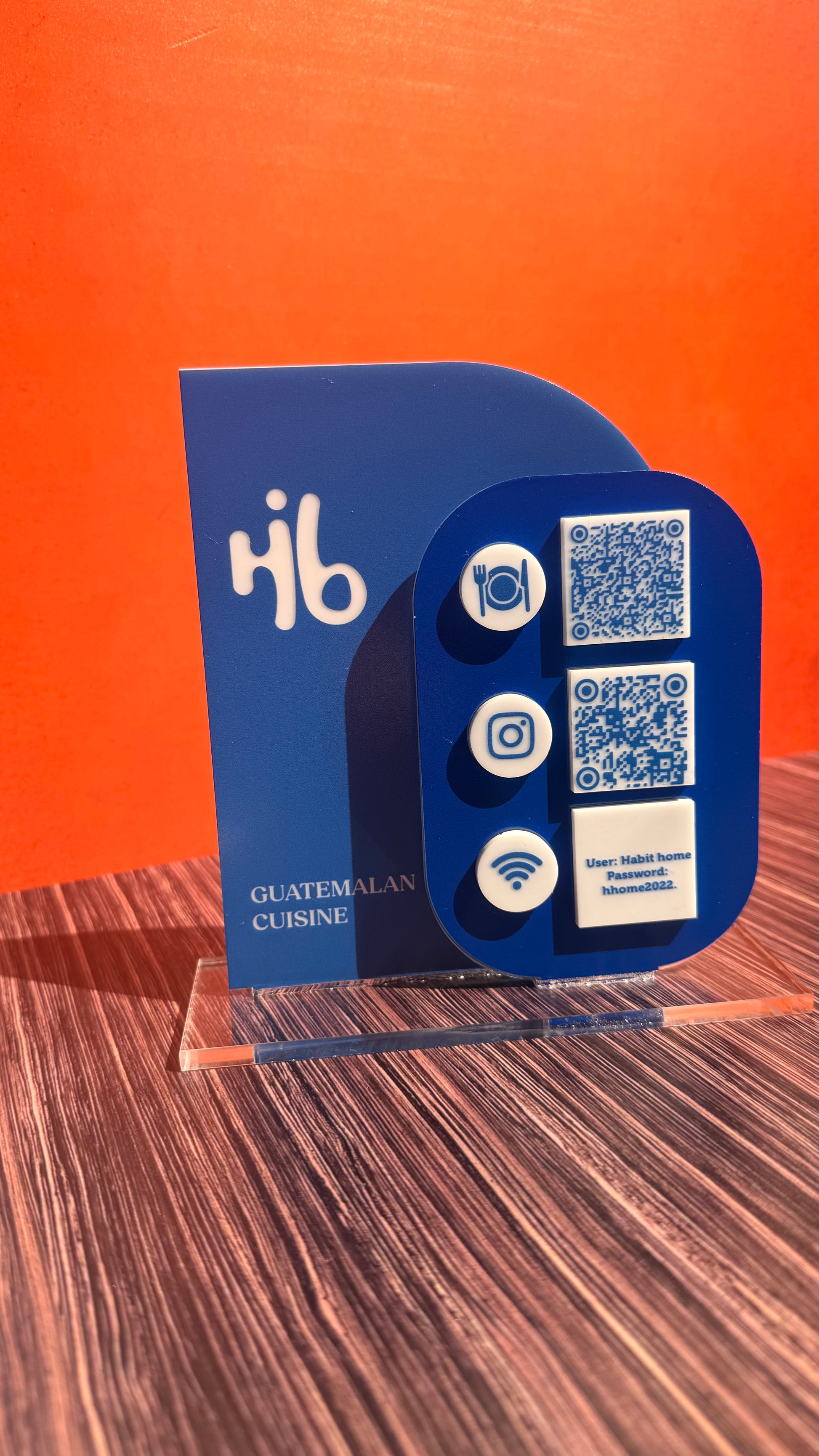 Display QR tamaño media carta, impresión UV en acrilico de 3mm, con base de 5mm.