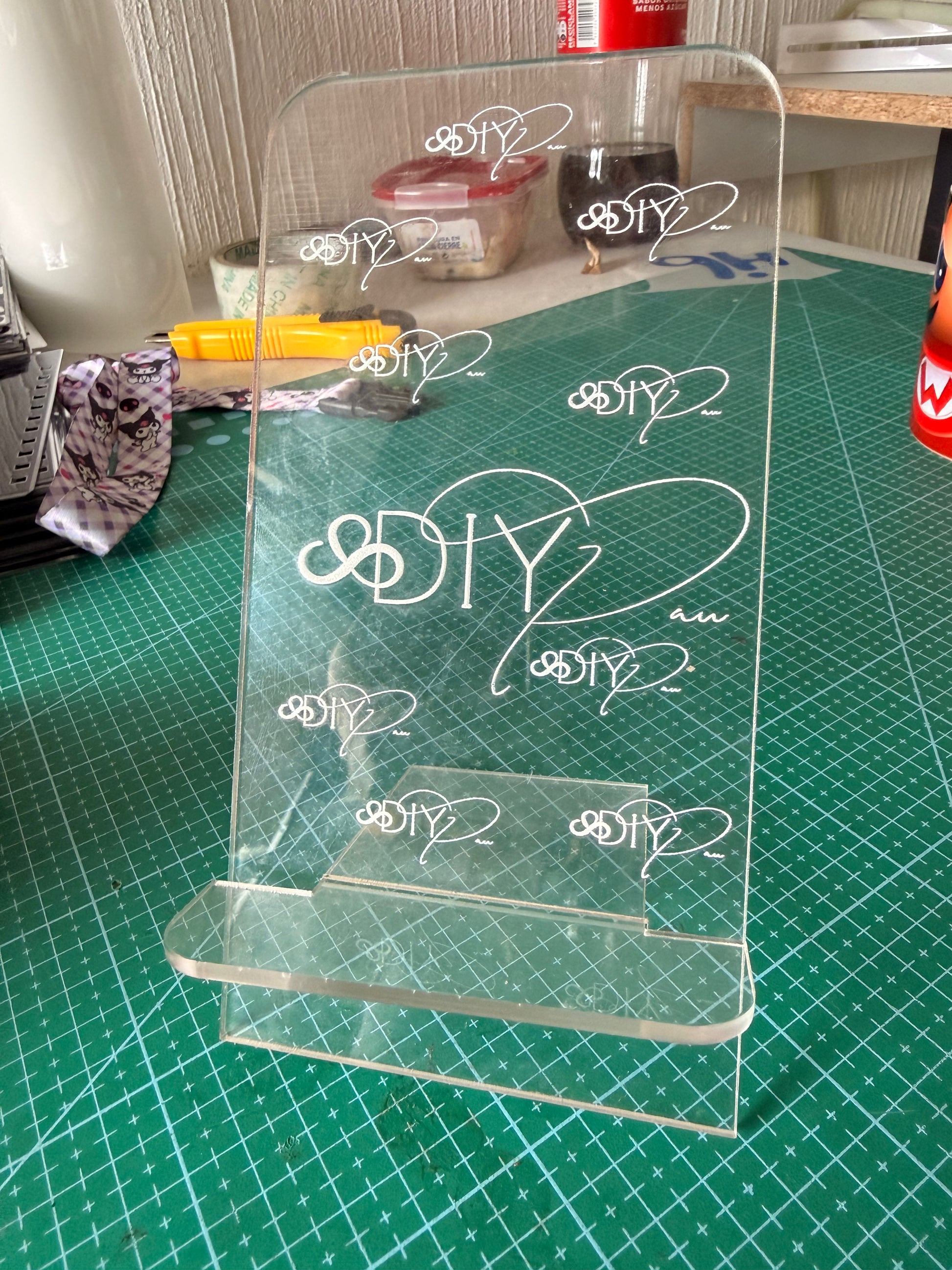 Porta celular de acrilico personalizado con lo que tu desees, acrílico de 3mm transparente con impresión a full color.