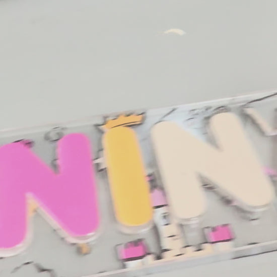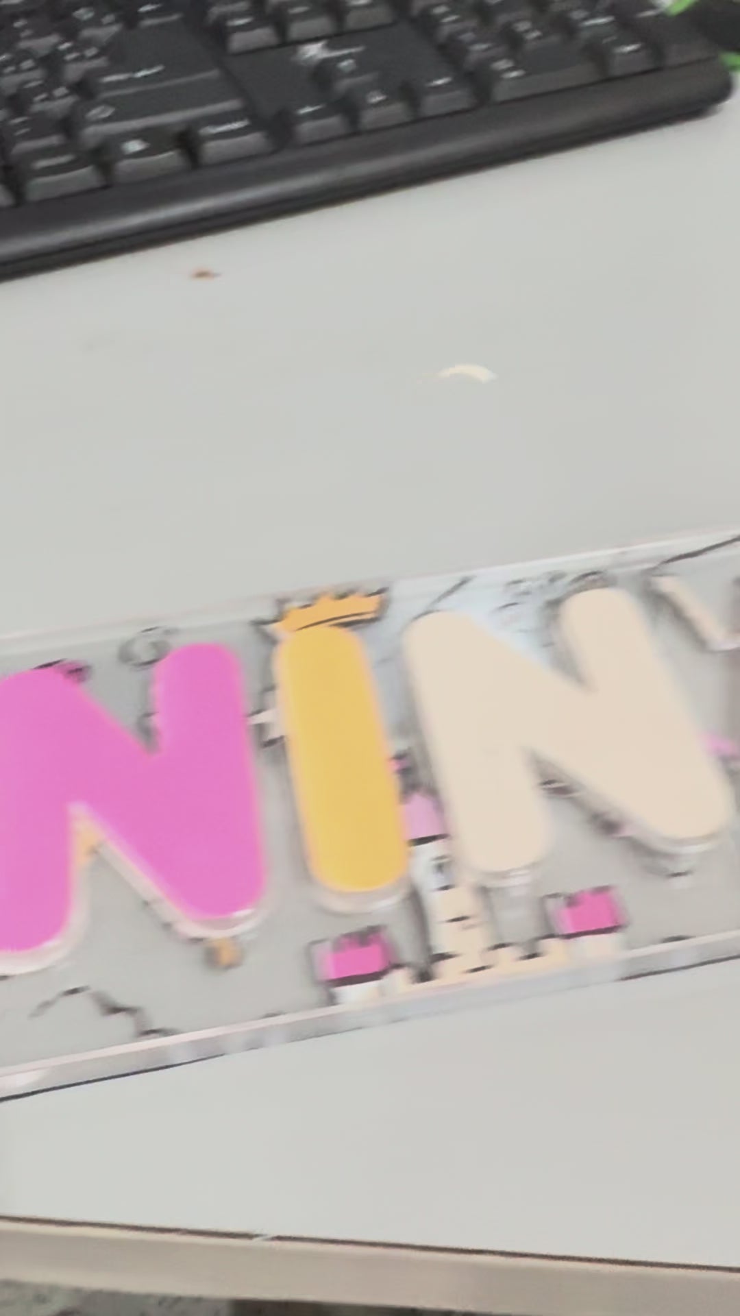 Rompe cabezas decorativo de acrílico con nombre e impresión a full color de 25cm de ancho por 7 de alto.
