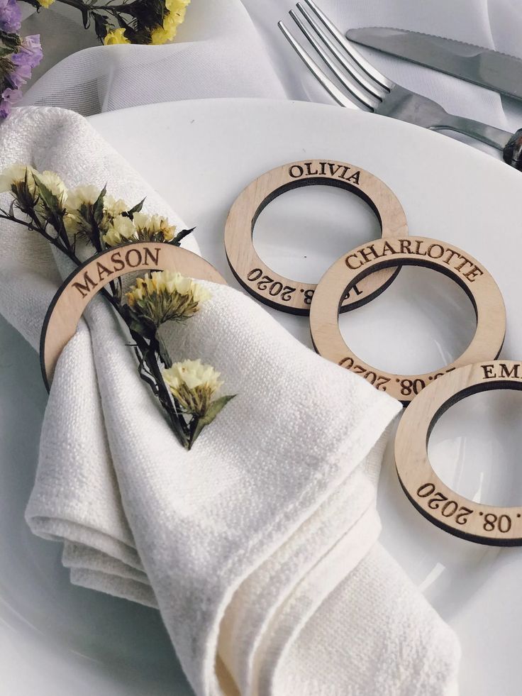 Aros grabados en MDF para servilletas personalizados. Precio unitario.